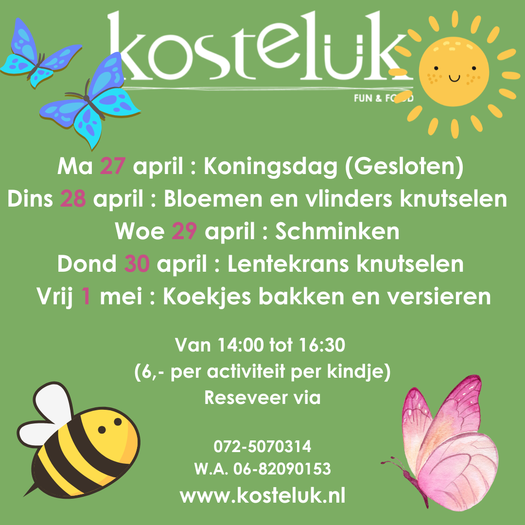 Wanneer je gezellig wilt komen lunchen en even wilt bijkletsen met je vriend of vriendin kunnen je kinderen zich Kosteluk vermaken!